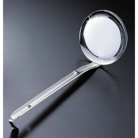 IKDエコクリーンシリーズのレードル類はスポット溶接+ろう付け加工です。柄と本体の結合部分を従来の鋲止めではなく、スポット溶接+ろう付け加工によりすき間をなくし完全密着しています。雑菌類の付着、繁殖を防ぎゼロクリア加工で洗いやすく常に清潔に保つことができます。