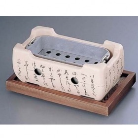 ◎昔ながらの和の風合いをアルミ合金にて再現いたしました。 アルミ製である為、破損いたしません。そのまま食器洗浄機 に使用できる為、衛生的にも優れています。また、独自の構 造設計で通気性に優れている為、炭の燃焼効率もよくなって います。※写真の【QSKA8】敷板、【QSM11】炭入れは別売です。※必ず専用の炭入れ・敷板を御使用下さい。 加熱すると、こんろが熱くなりますので、 やけどに御注意下さい。漆塗りの机での 御使用は御遠慮下さい。