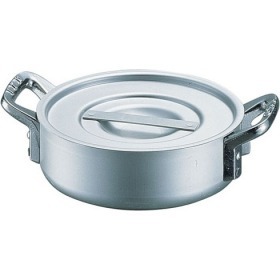アルミ電磁調理器用鍋 エレテックシリーズ[IH]・板厚4mm・底板厚6mmの優れた耐久性を持ち、 熱伝導がよく、鍋全体に平均して熱が回ります。・底には特殊アルミ鋼+ステンレスで、業務用 電磁調理器に使用できます。・鍋、蓋ともにアルマイト加工を施しているため、 ご使用前の米のトギ汁、野菜等による煮沸の 必要はありません。底面厚アルミ:4mm厚 JIS AL 1100アルミ層:5.4mmステンレスSUS430 0.6mm