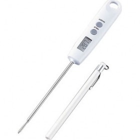 測定範囲:-45?+200℃(520Wは250℃)測定精度:±1℃(0?+100℃)     ±2℃(その他の範囲)分解能:0.1℃付属品:LR44ボタン電池1個、プローブキャップ●約5秒(使用環境による)の高速測定。●オートパワーオフ機能。●ホールド機能付。