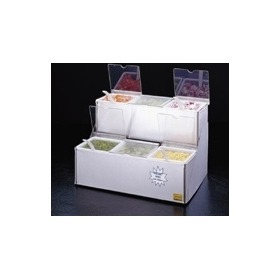 SAN JAMAR 耐久性のある18‐8ステンレスをボディーに採用、 衛生的かつ保温性にもすぐれています。 また付属のアイスパックを使用すれば充実した コールドサービスが提供できます。※アメリカ※写真のレードルは別売です。●仲子サイズ 142×147×H70