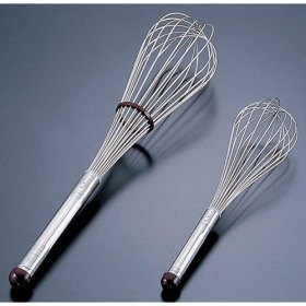 ※#18?#30まではリング付です。■特長独自の特殊樹脂を注入のため、柄の中に水がはいりにくく衛生的です。円盤状のヘッド部は、ひっかかりがあるためホイップしても、手がすべる心配がありません。特殊加工技術により、柄と線材が固定され、さらに抜けにくい構造になっています。樹脂部材質:66ナイロン 耐熱180℃※洗浄機対応