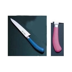 TKG-PRO(プロ) 業務用 抗菌カラー包丁これからの衛生管理の決定版!多彩なカラーバリエーションハンドルのカラーは6色あり、肉類、魚貝類、野菜、果実、パン類、加工済食品など食品別に利用できるので衛生管理に最適です。※庖丁の表示サイズは、すべて刃渡り寸法となっております。※御註文の際は、色を御指定ください。材質:刀身モリブデンバナジウム鋼 ハンドル18-8ステンレス抗菌焼付塗装■HACCP対応工場に最適HACCPとは、集団食中毒のような食品による事故を防ぐために考えられた衛生管理法です。それぞれの現場で作成したHACCPプランという科学的なマニュアルに沿って日常の衛生管理を行い、食中毒などを予防します。って日常の衛生管理を行い、食中毒などを予防します。●6色のハンドルカラーを食品別・用途別に使い分けることができ、 衛生管理・HACCP対応に最適です。●刀部と柄を溶接一体化してありますので、プラスチック柄の庖丁 のように、刀部と柄の連結部の隙間に汚水等がしみ込む恐れ がなく、たいへん衛生的です。●ハンドル部は、18-8ステンレス製の一体成型で殺菌・雑菌の 住み家を作りません。なお、抗菌剤配合特殊塗料を焼付塗装 してありますので、たいへん衛生的です。※抗菌