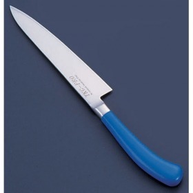 TKG-PRO(プロ) 業務用 抗菌カラー包丁これからの衛生管理の決定版!多彩なカラーバリエーションハンドルのカラーは6色あり、肉類、魚貝類、野菜、果実、パン類、加工済食品など食品別に利用できるので衛生管理に最適です。※庖丁の表示サイズは、すべて刃渡り寸法となっております。※御註文の際は、色を御指定ください。材質:刀身モリブデンバナジウム鋼 ハンドル18-8ステンレス抗菌焼付塗装■HACCP対応工場に最適HACCPとは、集団食中毒のような食品による事故を防ぐために考えられた衛生管理法です。それぞれの現場で作成したHACCPプランという科学的なマニュアルに沿って日常の衛生管理を行い、食中毒などを予防します。って日常の衛生管理を行い、食中毒などを予防します。●6色のハンドルカラーを食品別・用途別に使い分けることができ、 衛生管理・HACCP対応に最適です。●刀部と柄を溶接一体化してありますので、プラスチック柄の庖丁 のように、刀部と柄の連結部の隙間に汚水等がしみ込む恐れ がなく、たいへん衛生的です。●ハンドル部は、18-8ステンレス製の一体成型で殺菌・雑菌の 住み家を作りません。なお、抗菌剤配合特殊塗料を焼付塗装 してありますので、たいへん衛生的です。※抗菌
