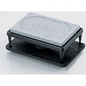 遠赤外線効果のある石焼。〈特長〉1.石器は熱に強く、割れにくい、特殊な石を使用しております。 石器が加熱されますと、表面から遠赤外線が放射され、それ が食物の内部に浸透して味の内包効果をおこさせ、水分分離 や組織分解せず食物を均一に焼きあげます。 特に焼肉の場合、焦げず、煙が出ず、油が飛び散らず、匂い も出ないといった特長があります。2.油煙や匂いが殆んど出ませんので高級料理店・ホテル・レス トラン・食堂・一般家庭などで、お部屋を汚す心配がありま せん。安心して御使用ください。3.石器ですので、調理器に匂いがつかず、手入れがカンタンで す。使用中でも石器の上に水をたらし、フキン等で拭き取る と、きれいに汚れが落とせます。 又,使用後はスポンジ等でカンタンに落ちます。〈使用方法〉●石という天然素材ですから、金属食器に比べて高温になるま で多少時間がかかりますが、一度温まると冷めにくく、保温 力があります。●固型燃料に火をつけてから、石器が適温(150℃.180℃)に なったかどうかの判断は、水滴をたらして はじけるように なると焼き頃ですので食物をのせてください。〈使用上の注意〉 ガスコンロ専用以外は、ガス等、他の燃料の使用は絶対にし ないでください。使用した場合、石器が高温になり割れるお それがあります。 又、遠赤外線効果が半減しますので御注意ください