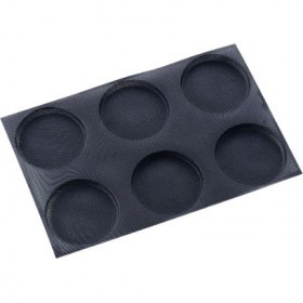 出来上がり寸法:Φ150×H15mm ドゥマール シルフォームドゥマールのフレキシパンと同じ材質でできたメッシュ状の型「シルフォーム」・メッシュ状の型で、焼成時間が短縮され余分な水分油分が 落ちてサクサクに焼き上がります。・パンやサブレなどしっかりした生地の焼成に向いています。・冷凍から焼成まで使用できるので、冷凍生地をそのまま オーブンに入れることも可能です。・タルト生地仕込みする場合、重石をのせたり、ピケをすること が不要で、生地が浮いてくることなく時間も短縮され、 きれいに焼き上げることができます。・シュー生地程度の柔らかい生地にもお使いいただけます。材質:グラスファイバーシリコン加工耐熱温度:250℃ 耐冷温度:-40℃使用天板サイズ:フレンチサイズ※フランス