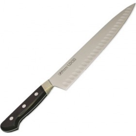 スウェーデン特殊鋼の最高峰、高純度ピュアステンレス鋼使用のミソノUX10シリーズ。高級炭素鋼と同等の硬度(HRC59?60)がもたらす素晴らしい切れ味は調理師のめざす理想に限りなく接近。研ぎやすく長切れする品質の高さと、錆びにくさは画期的最高級クラスです。※包丁の表示サイズは、すべて刃渡り寸法となっております。