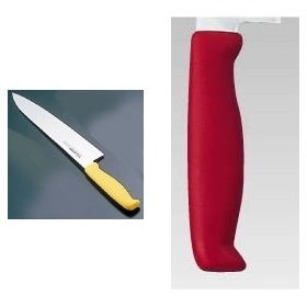 ●「疲労軽減」「衛生管理」を最大のテーマに開発されました。人間工学に基づいたハンドル形状、切れ味、耐久性があり、また多数導入しやすくHACCP衛生管理には最適です。●抗菌加工された滑りにくく握りやすいエラストマー樹脂ハンドルで、食材・工程・担当者別での管理を容易にします。刀身には手術用メスにも使用されるモリブデンバナジウム鋼を採用し、切れ味と持続性にも優れます。
