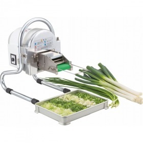 258×437(+125)×h426電源:単相100v 50/60Hz定格消費電力:80W定格時間:25分厚み調整:1?5mm(無段階)投入口寸法:86×35質量:12kg・ネギを送りベルトに挟めば、あとは全自動でスライスします。・専用の刃物研磨器が標準装備されていますので、切れ味が悪くなってきたら刃先を研磨する事ができます。