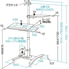 ●高さは700?1760mmまで可動し、任意位置で固定することができます。(ネジで固定します)