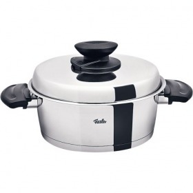 フィスラー コロナル シリーズ底厚三層カプセル構造熱伝導の高いアルミ合金素材を保温性の高いステンレスでカプセル状に包みこんだフィスラー独自の構造。効率よく加熱することを可能にします。液だれしない気配り設計鍋のフチは、液だれせずに注げる特殊設計。ジョウゴを使わなくても鍋の中身を移すことができ、鍋側面やキッチンを汚しません。フタの取っ手に付いているスチームコントロールを回すだけで、無水調理やスチーム調理も思いのまま。※IH対応※ドイツ