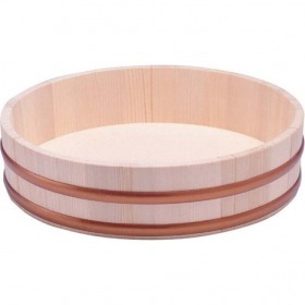 飯台のあく抜きについて1.米の研ぎ汁を煮立てて、桶いっぱいに張り、 冷えるのを待って、その後水洗いをする。2.又は、桶いっぱいに湯を張って、その中に酢を 半合?1合位入れて、湯が冷えたら、お湯で洗う。使用後の注意御使用後は、水洗いを手早くする事が美しく長もちをさせます。そして陰干しをしてからしまってください。長く水に漬けすぎますと、タガがゆるんだり変形、変色したり致しますので御注意ください。材質:天然木(シベリア産銀杉) タガ /ポリプロピレン製●タガの落ちないキープシリーズの飯台。●ポリプロピレン製の特殊タガが木の本体をしっかりガード。●すし飯作りの他にも、そうめん、ちらし寿司、奴豆腐、 オードブル、鍋の具の器等、さまざまな使い方で天然素材の良さを楽しめます。