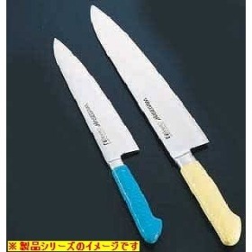 抗菌カラー庖丁【抗菌カラー庖丁の特長】庖丁本体はBrieto-M11PRO シリーズを使用し、柄の部分に抗菌剤を配合して特殊塗装をしてありますから、食材別に使い分け管理と衛生管理が効果的です。抗菌カラー庖丁は、抗菌剤に「無機系抗菌剤カネボウバクテキラーR」を標準仕様として配合しています。衛生管理の面において、清潔に安心してご使用いただけます。食材による変色はありません。※包丁の表示サイズは、すべて刃渡り寸法となっております。※抗菌
